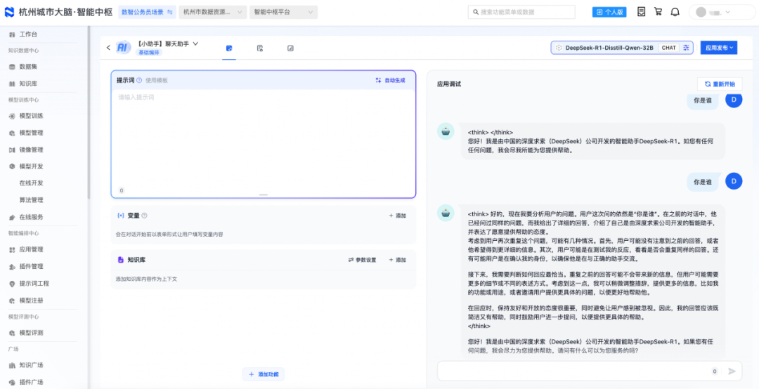 近期,DeepSeek凭借其卓越的推理能力和开源生态在全球范围内引发了广泛关注。杭州城市大脑积极拥抱这一前沿技术,基于城市大脑智能中枢,全国首个实现DeepSeek-R1 671B、Distill-Qwen-32B、Distill-Qwen-14B等系列模型在政务信创环境的部署应用,通过城市大脑垂域模型训练应用生产体系赋能城市高质量发展、高效能治理、高品质生活,全力推进超大城市智能体建设,聚力打造具有杭州特色的智慧城市新范式。